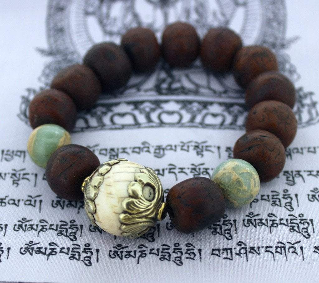 We have just a few of these silver capped naga shell wrist malas with old stock bodhi seeds.