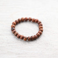 • This beautiful oiled Rosewood from Thailand is hand strung on stretchy cord in the shadow of the Boudhanath Stupa in Kathmandu along with five Lava Rock beads for peaceful grounding of your Root Chakra.