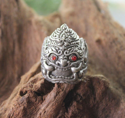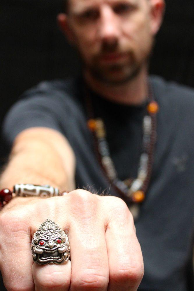 Astonishing! We found some amazing new mens rings from Bangkok this season. This fierce figure is Totsagan from Ramayana, Thailand's great epic tale.