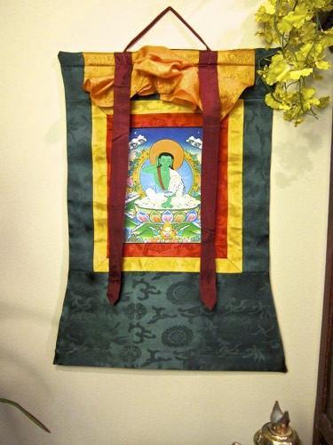 Hand painted and framed in Nepal. 25 by 18 inches framed