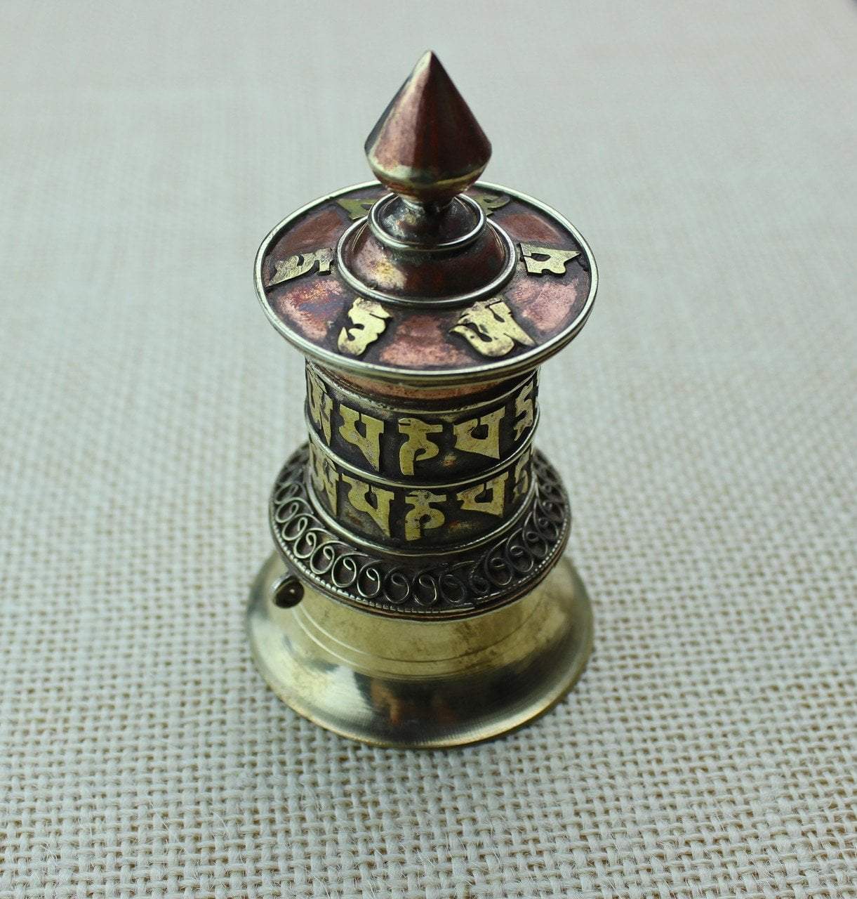 Mini OM Brass and Copper Desktop Tibetan Prayer Wheel