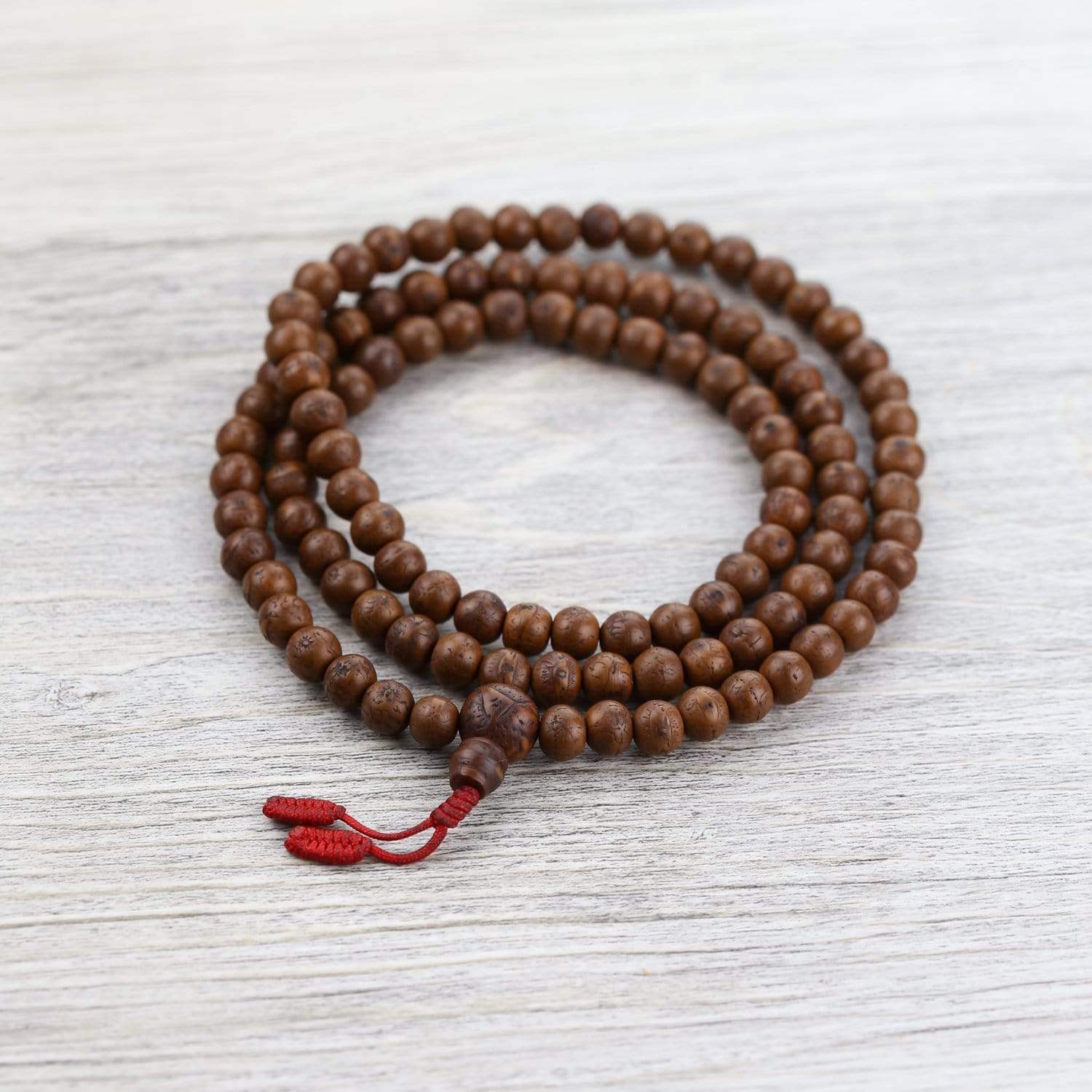 On their trip to Nepal in October 2019, DharmaShop owners, Christy and Sander Cohen, acquired this mala from a Tibetan gentleman on the steps of the monastery just outside of the Boudhanath Stupa. He had a small collection of gorgeous antiques from which Sander and Christy were able to purchase a handful of high quality bodhi malas.