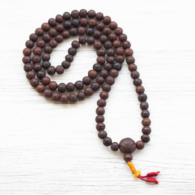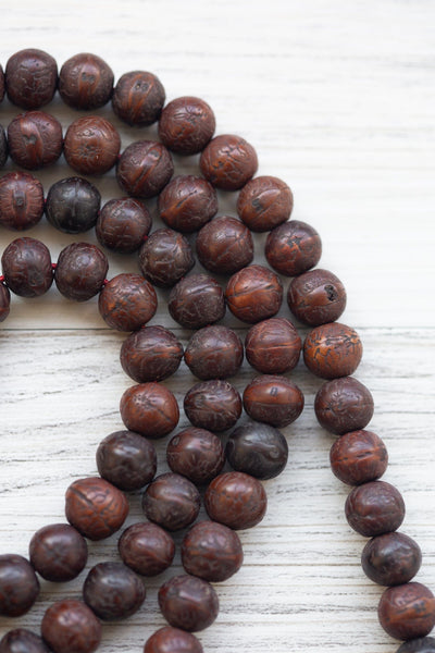 From our DharmaShop curated collection, this mala was hand selected from an antique Bodhi Seed seller just outside of the Boudhanath temple. Here you can see monks from nearby monasteries meditating with similar mala beads.