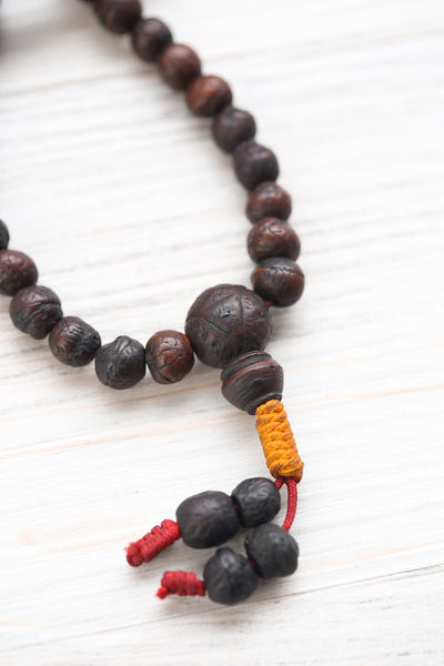 Collected from the Kavrepalanchok District— one of the only places in Nepal to produce Bodhi seeds—this mala comes from a family who has traded and treasured these beads for generations. Kavrepalanchok is also the hometown of the head of our DharmaShop Nepal team!