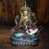 This jeweled mosaic Chenrezig statue is handmade in Kathmandu, Nepal by a 5th generation crafting family.