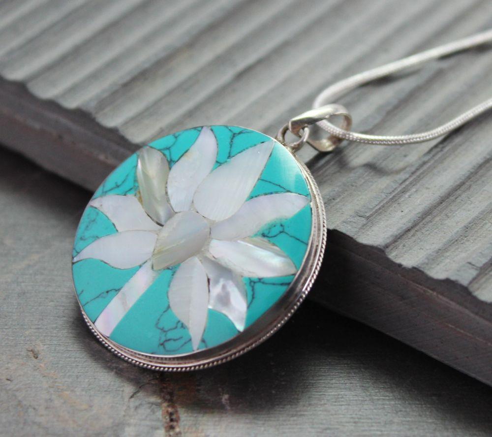 This one won't last long! Our only turquoise version of this best selling sterling silver handmade pendant.