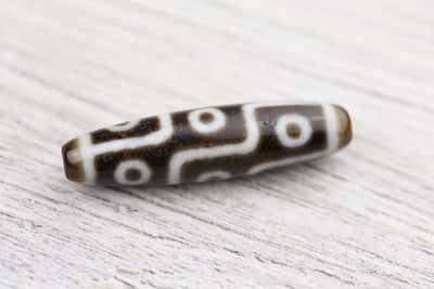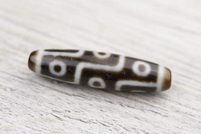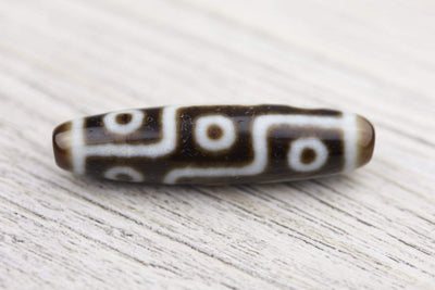 The 9-Eyed Dzi bead assists its owner in gathering wealth, achieving good health and success, as well as gaining power, compassion, and glory. It is a mystical bead that acts as a protector, expelling evil. 9-Eyed Dzi is one of the most sought after, believed to represent the nine planetary systems and its astrological essence.