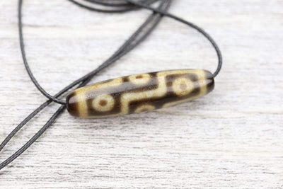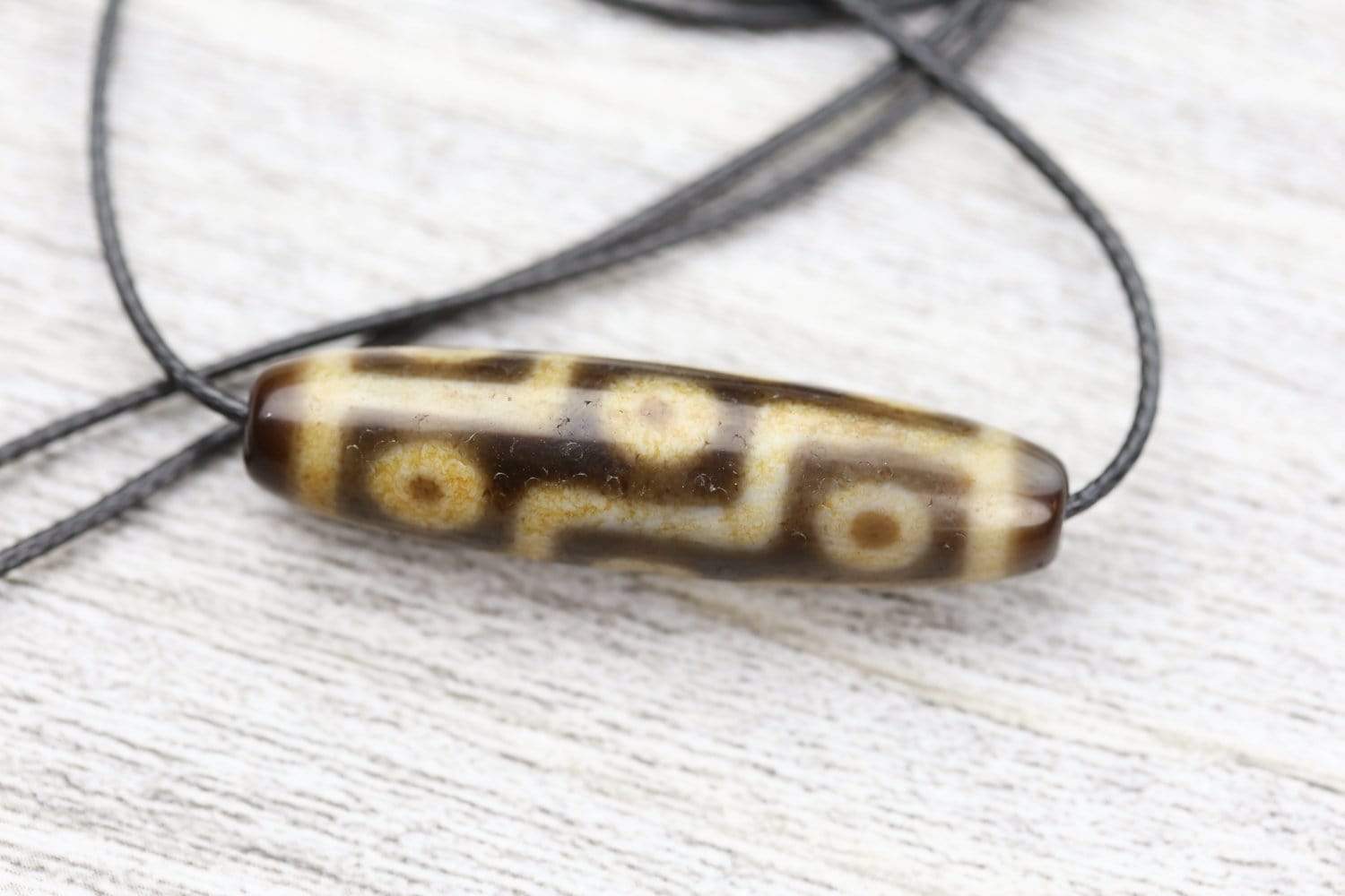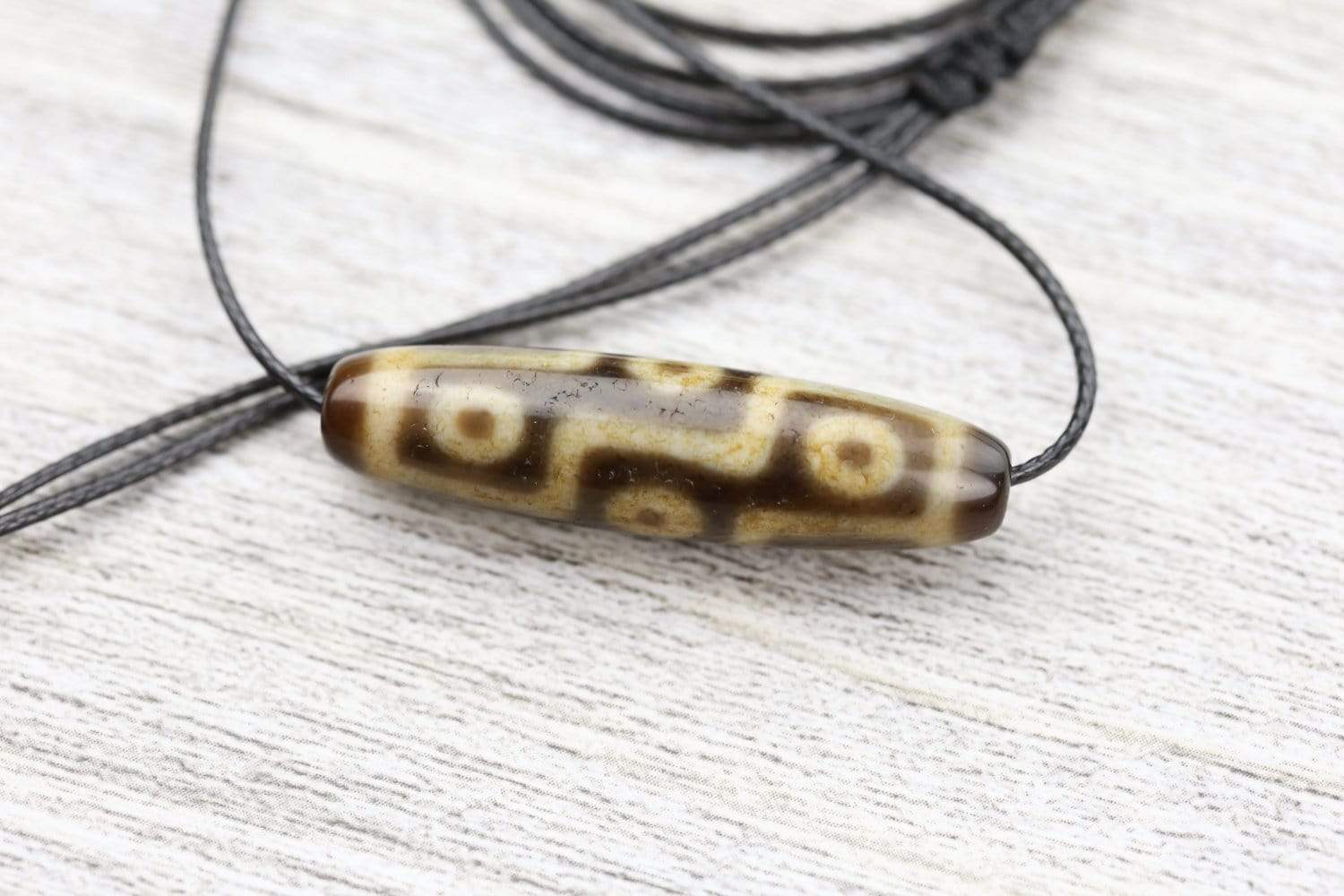 The 9-Eyed Dzi bead assists its owner in gathering wealth, achieving good health and success, as well as gaining power, compassion, and glory. It is a mystical bead that acts as a protector, expelling evil. 9-Eyed Dzi is one of the most sought after, believed to represent the nine planetary systems and its essence.