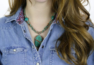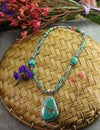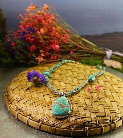 During our last trip to Nepal we picked out some amazing Turquoise and coral stones that were hand inlaid with gold and silver. We asked our jewelry artists to string them with sterling spacers and gemstone beads in the traditional Tibetan style.