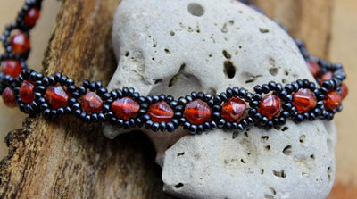 Glass beaded anklet. Can also be worn as a stylish bracelet! Handmade in Nepal. Two holes for secure fastening.