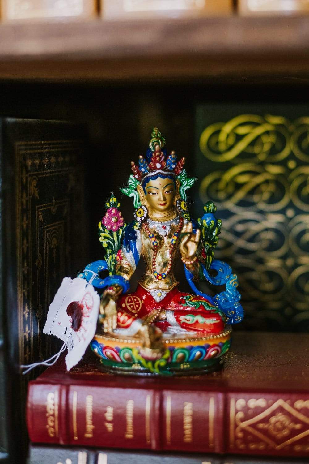 Green Tara is known as the Buddha of enlightened activity, filled with youthful vigor. She is the fiercer form of Tara, but is still a savior-goddess of compassion. Green Tara is intensely compassionate and acts quickly to help those who call upon her.