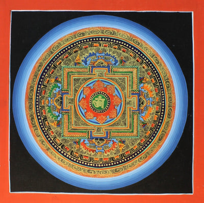 Our new thangka makers continue to send us amazing work! This mandala is handpainted with gold leaf paint. Remarkable detail!