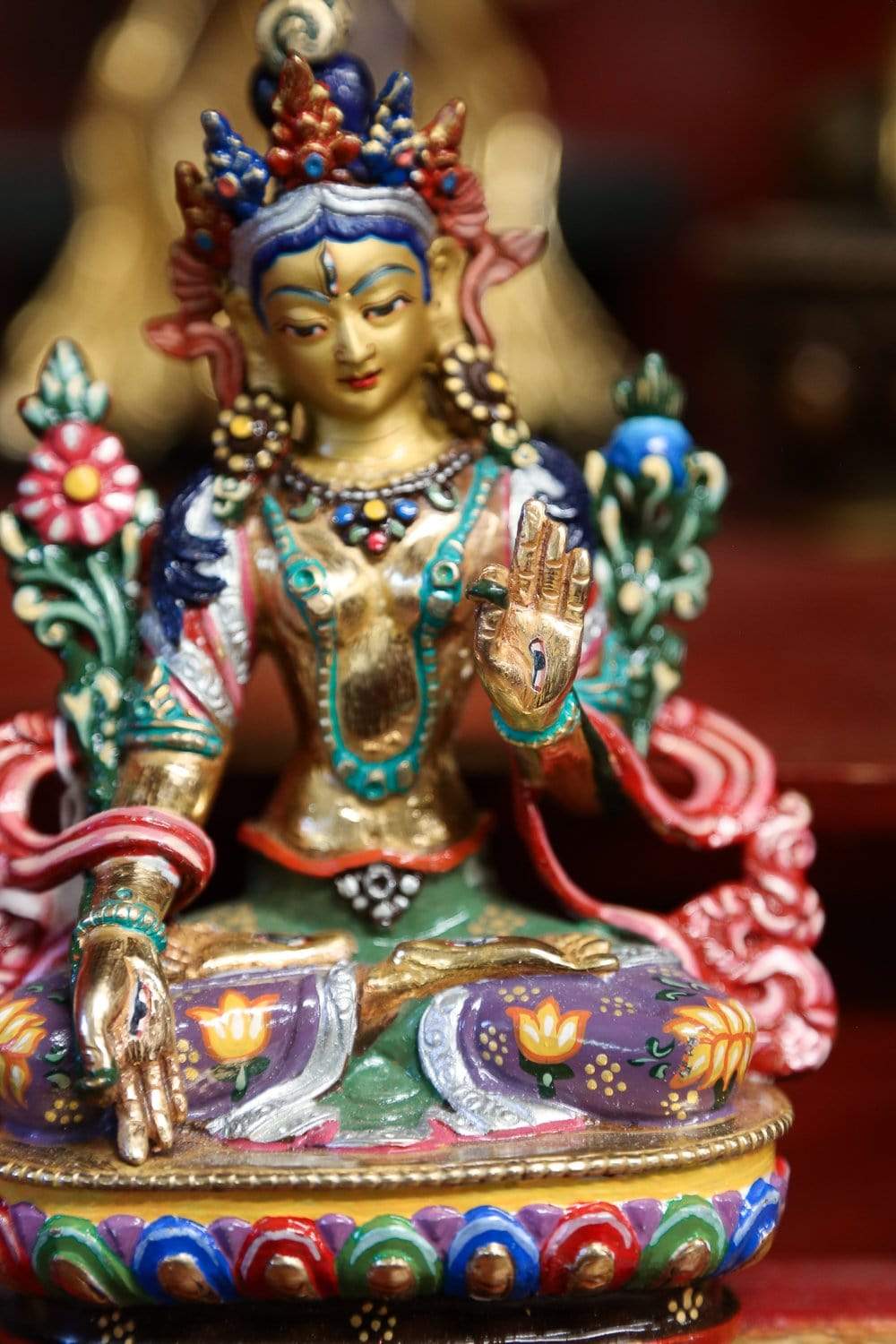 White Tara is the embodiment of healing, compassion, and wisdom. With her seven eyes she sees all suffering and has the wisdom and guidance the help you through your practice. She is often referred to as the 'swift Tara' as well as she is known for bringing quick relief to the suffering.