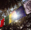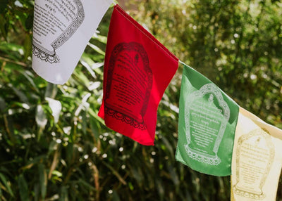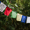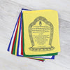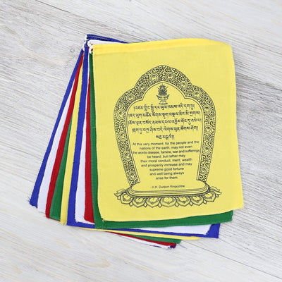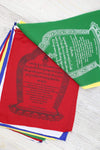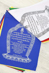 Set includes 10 flags that measure approximately 10 by 8 inches. Entire strand is about 7.5 feet long. Made of hemmed cotton in Nepal.