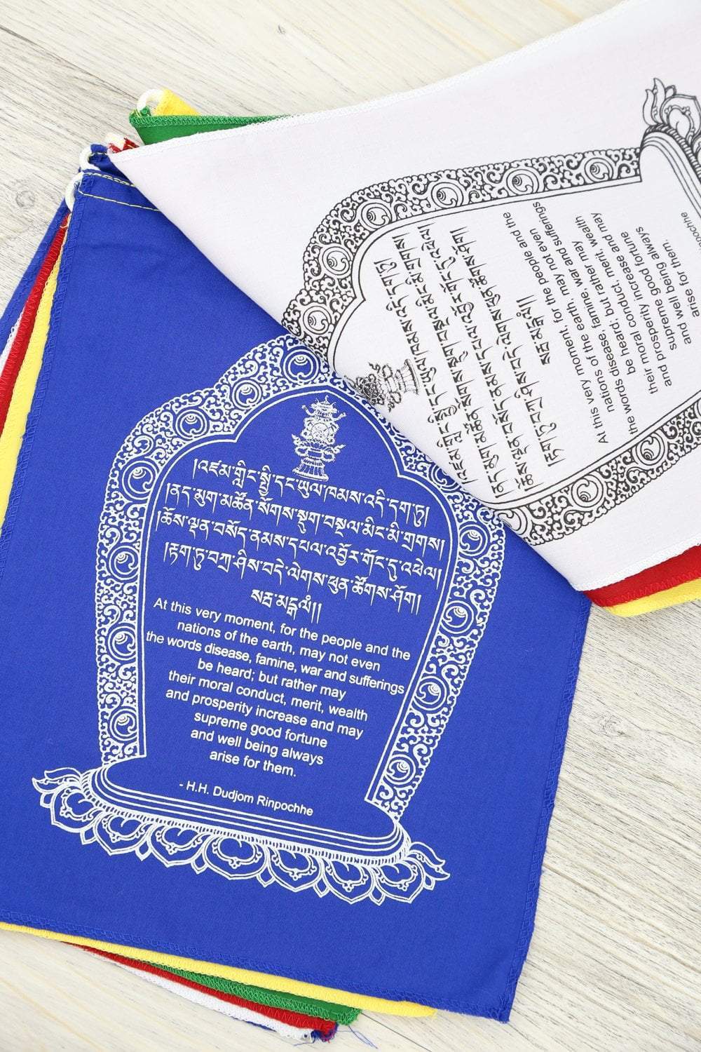 It reads, "At this very moment, For the peoples and the nations of the earth, May not even the words disease, famine, war and suffering be heard; but rather may their moral conduct, merit, wealth and prosperity increase and may supreme good fortune and well being always arise for them."