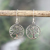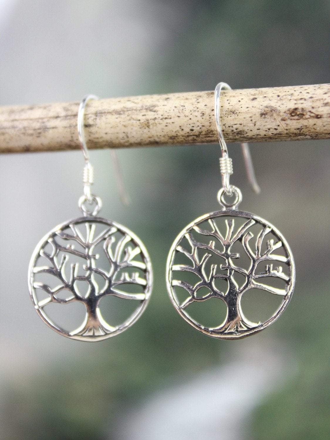 Earrings measure approximately 1 1/4 inch long from top of hooks. Tree of Life is about 3/4 inch. Handmade in Nepal.