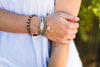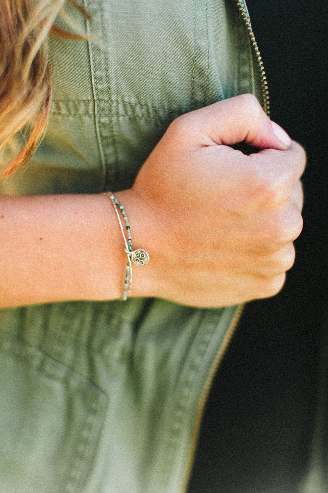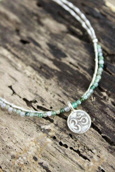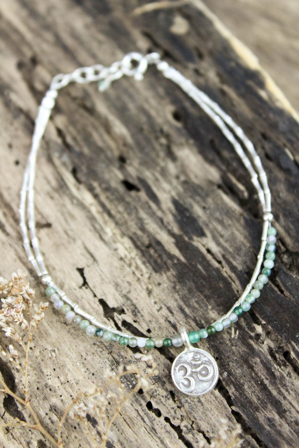 These dainty and elegant bracelets look gorgeous both on their own, or worn with one another in a stack.  Made from 98% pure Hill Tribe silver, they include multicolored aventurine beads and feature a cute hand-stamped silver Om charm.
