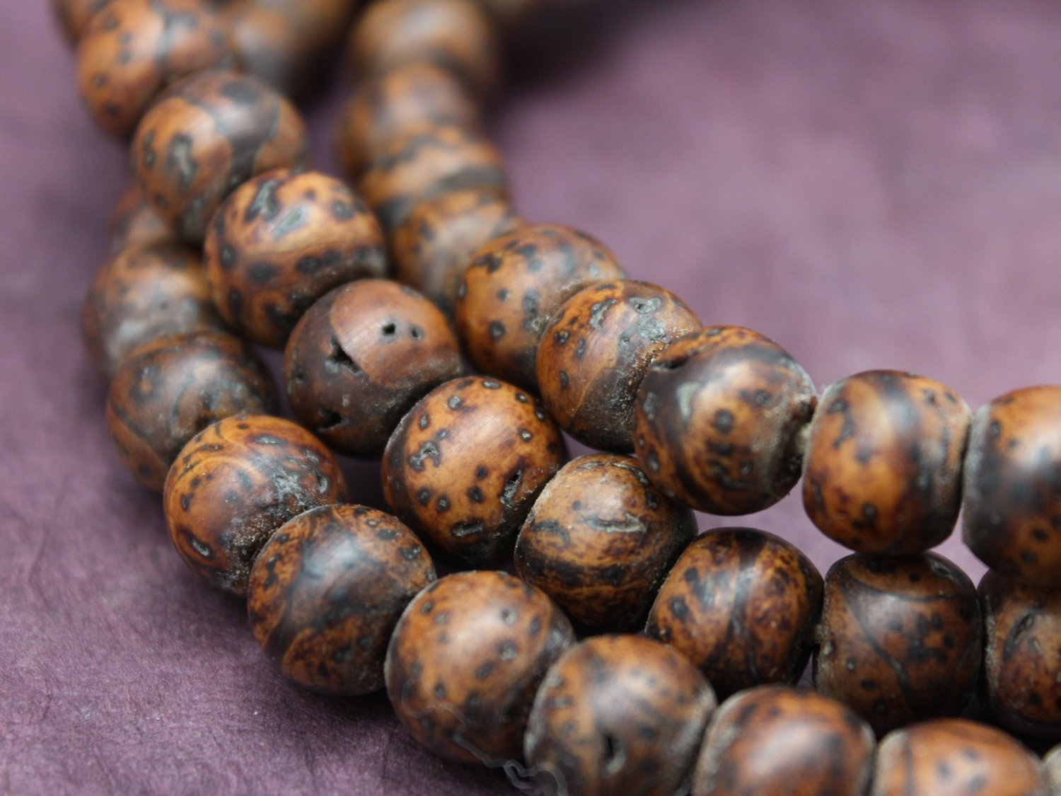 Bodhi seed beads can be used for counting all types of mantras as well as other prayers. These dark-speckled seed beads have special meaning for all seekers of divine wisdom. "Bodhi" in Sanskrit means enlightenment; as an "enlightened" seed, many practitioners use these malas for their essence and inherent teachings within each seed.
