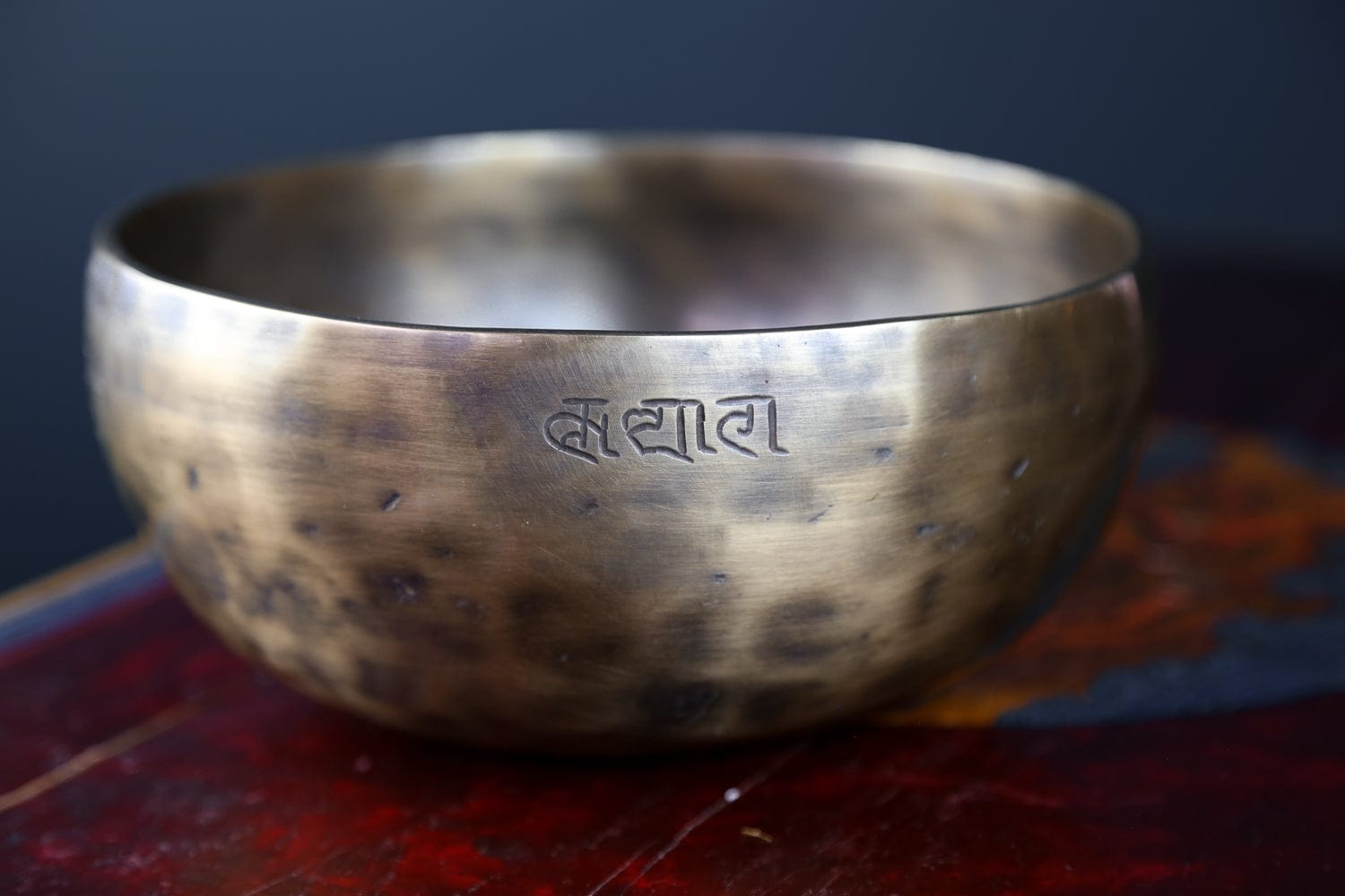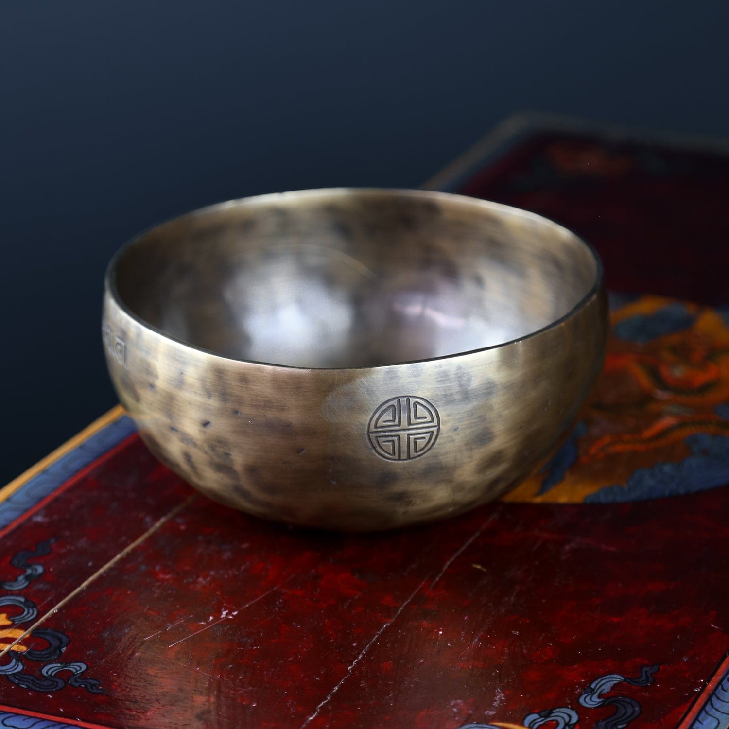 Bowl rings at a F# note when struck with a woolen mallet. This note resonates with the Heart Chakra, which is the center of real, unconditional affection, spiritual growth, compassion, devotion and love.