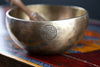 Bowl rings at a A# note when struck with a woolen mallet. This note resonates with the Third Eye Chakra. When this chakra is balanced, we are able to better connect to our intuition and imagination, visualize, concentrate, have insight, enlightenment and a finely tuned awareness.