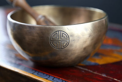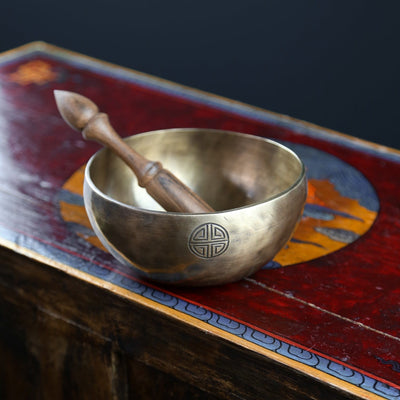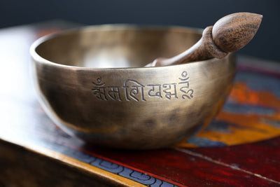 Each bowl features gorgeous hand carved details including an exclusive Full Moon Singing Bowl stamp and the mantra of compassion in Tibetan script.