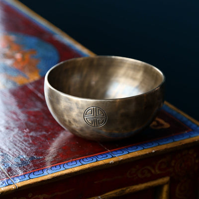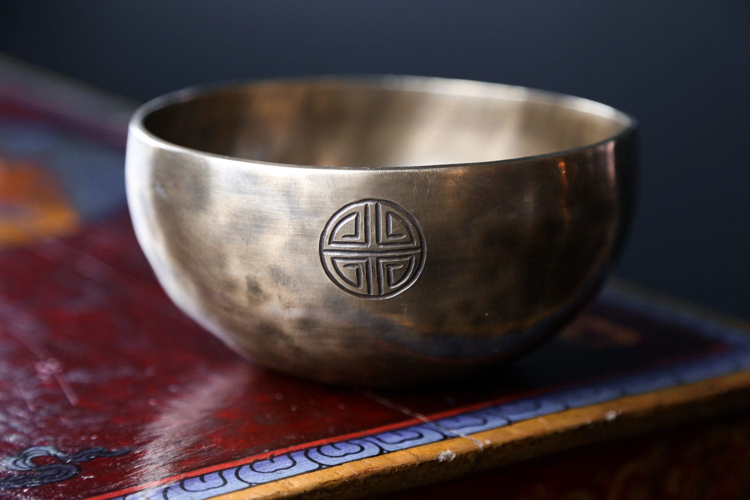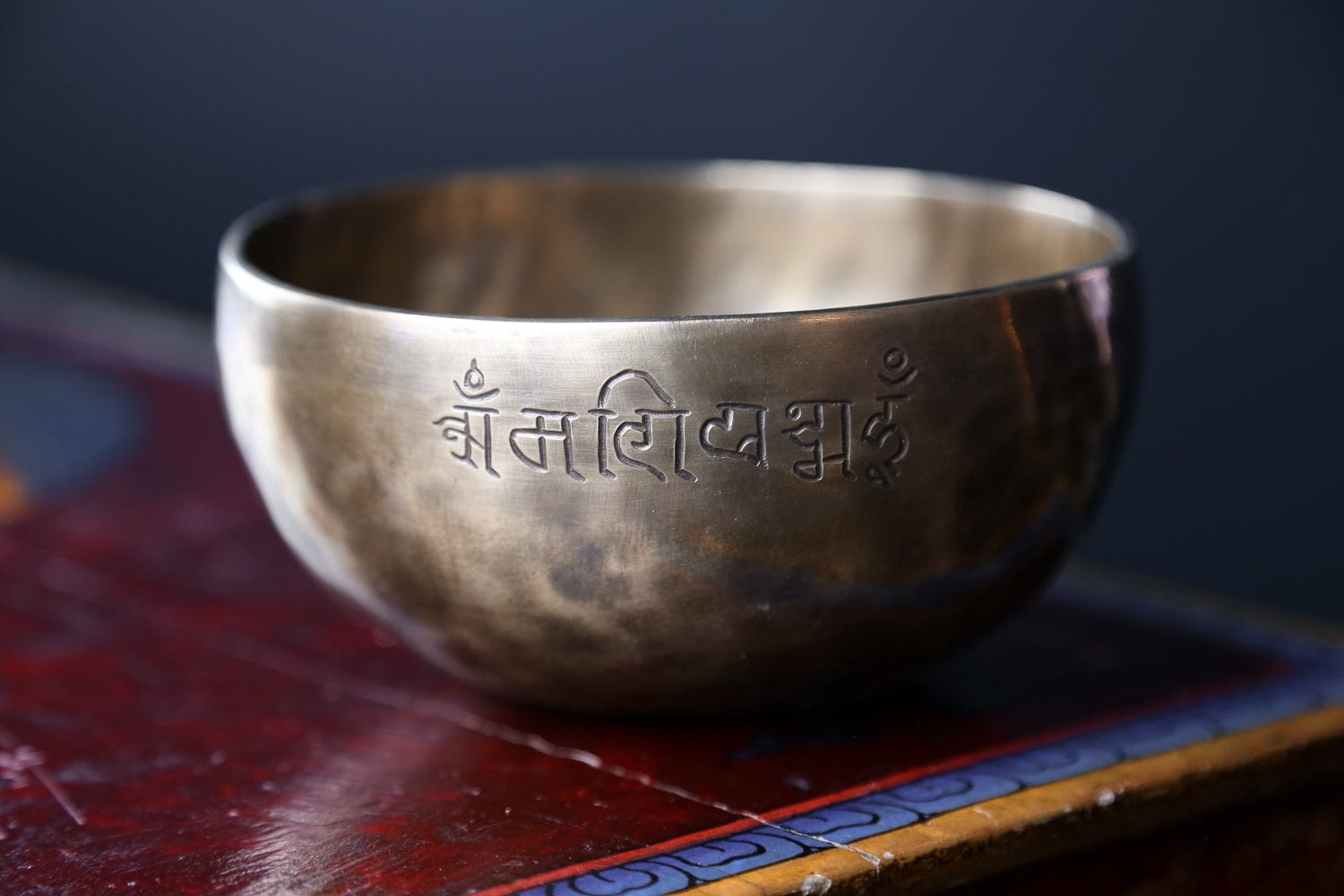Each bowl features gorgeous hand carved details including an exclusive Full Moon Singing Bowl stamp and the mantra of compassion in Tibetan script.