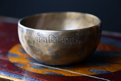 Each bowl features gorgeous hand carved details including an exclusive Full Moon Singing Bowl stamp and the mantra of compassion in Tibetan script.