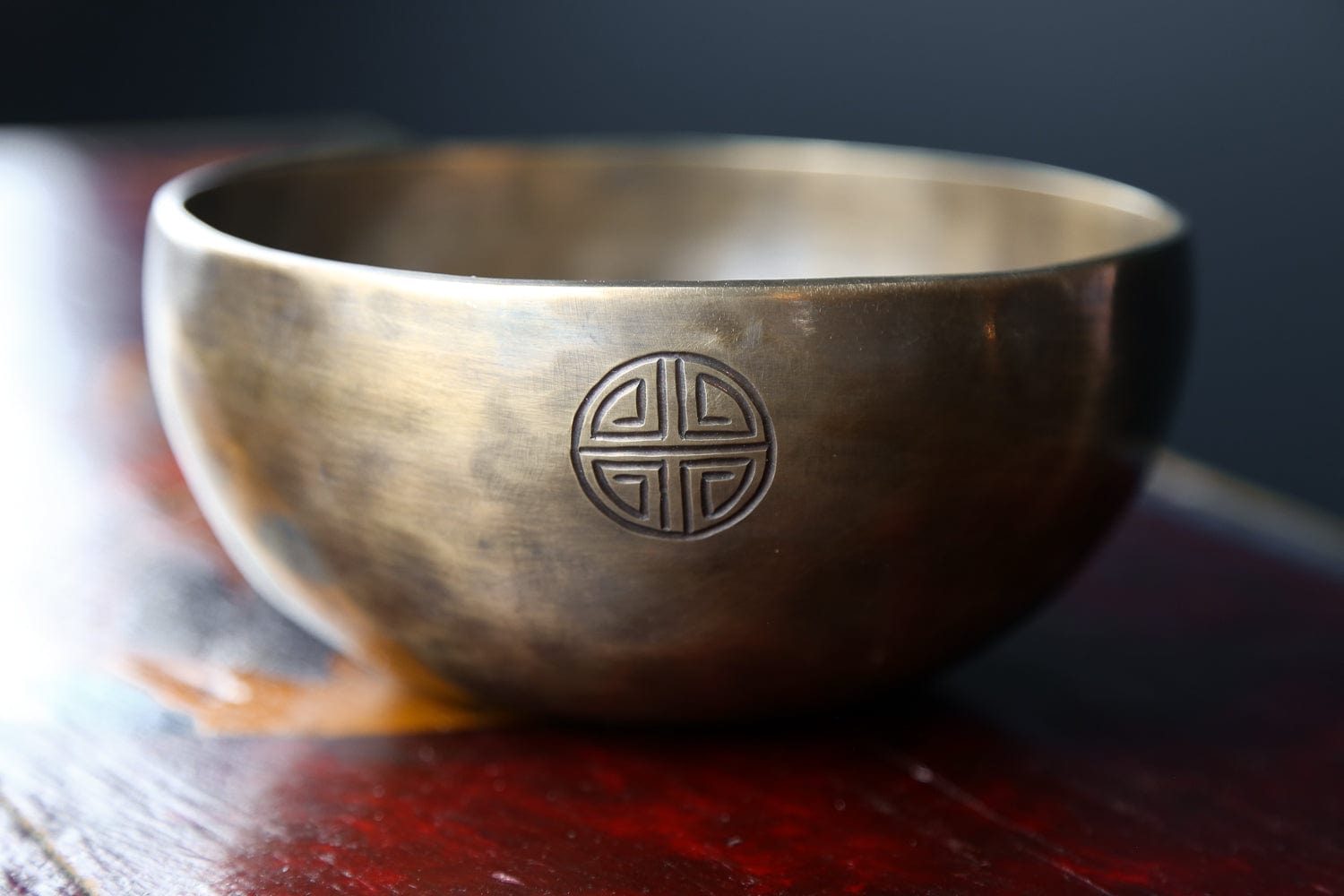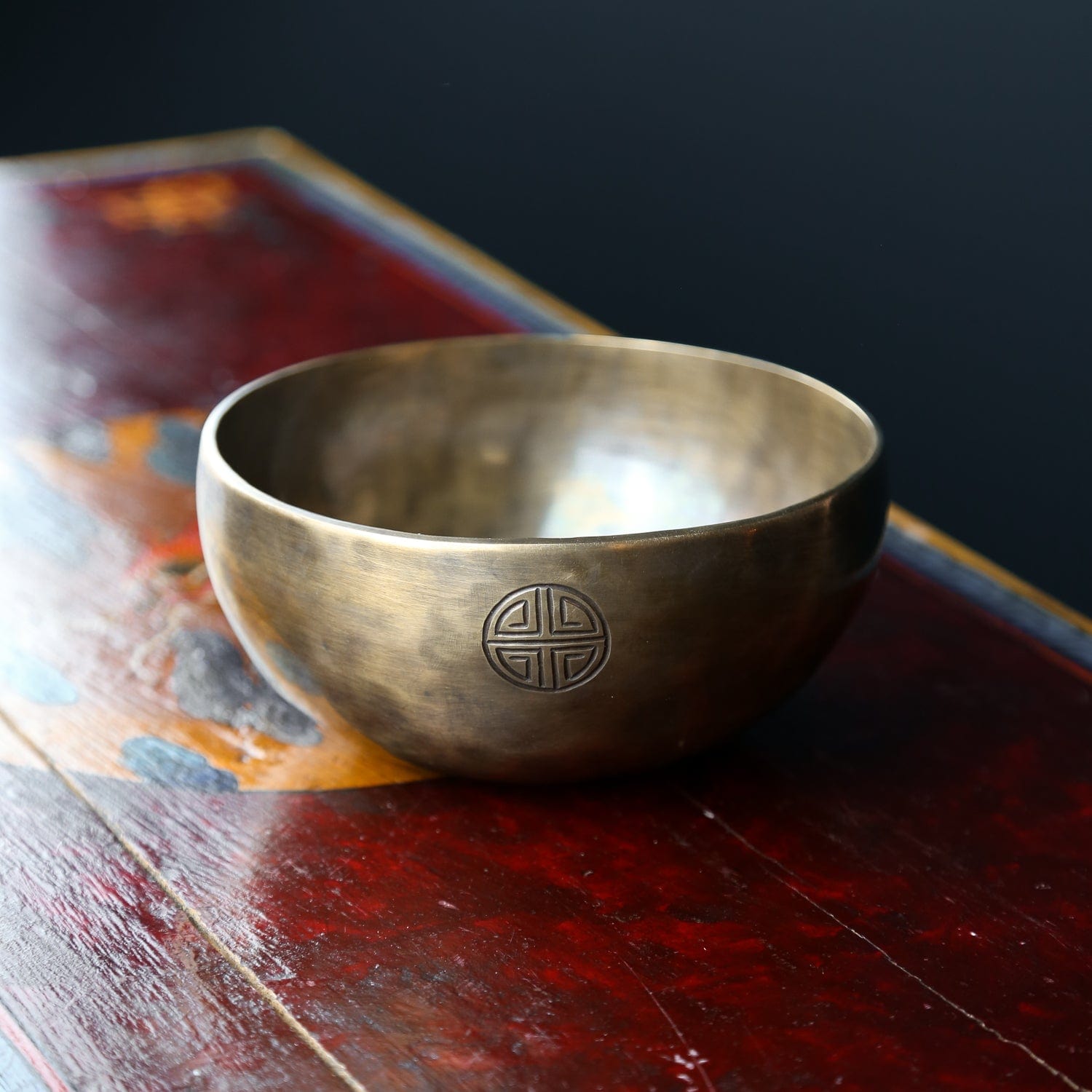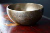 Each bowl features gorgeous hand carved details including an exclusive Full Moon Singing Bowl stamp and the mantra of compassion in Tibetan script.  The mantra invokes the powerful benevolent attention and blessings of Chenrezig, the embodiment of compassion.  The Full Moon Singing Bowl stamp is also known as a symbol of longevity and happiness.