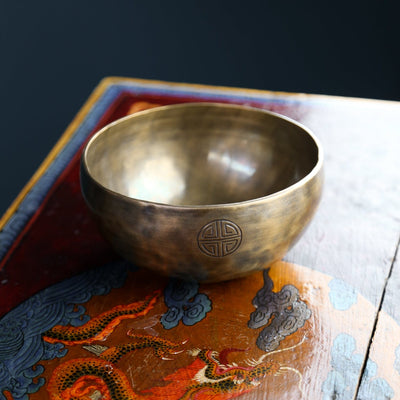 Each bowl features gorgeous hand carved details including an exclusive Full Moon Singing Bowl stamp and the mantra of compassion in Tibetan script.