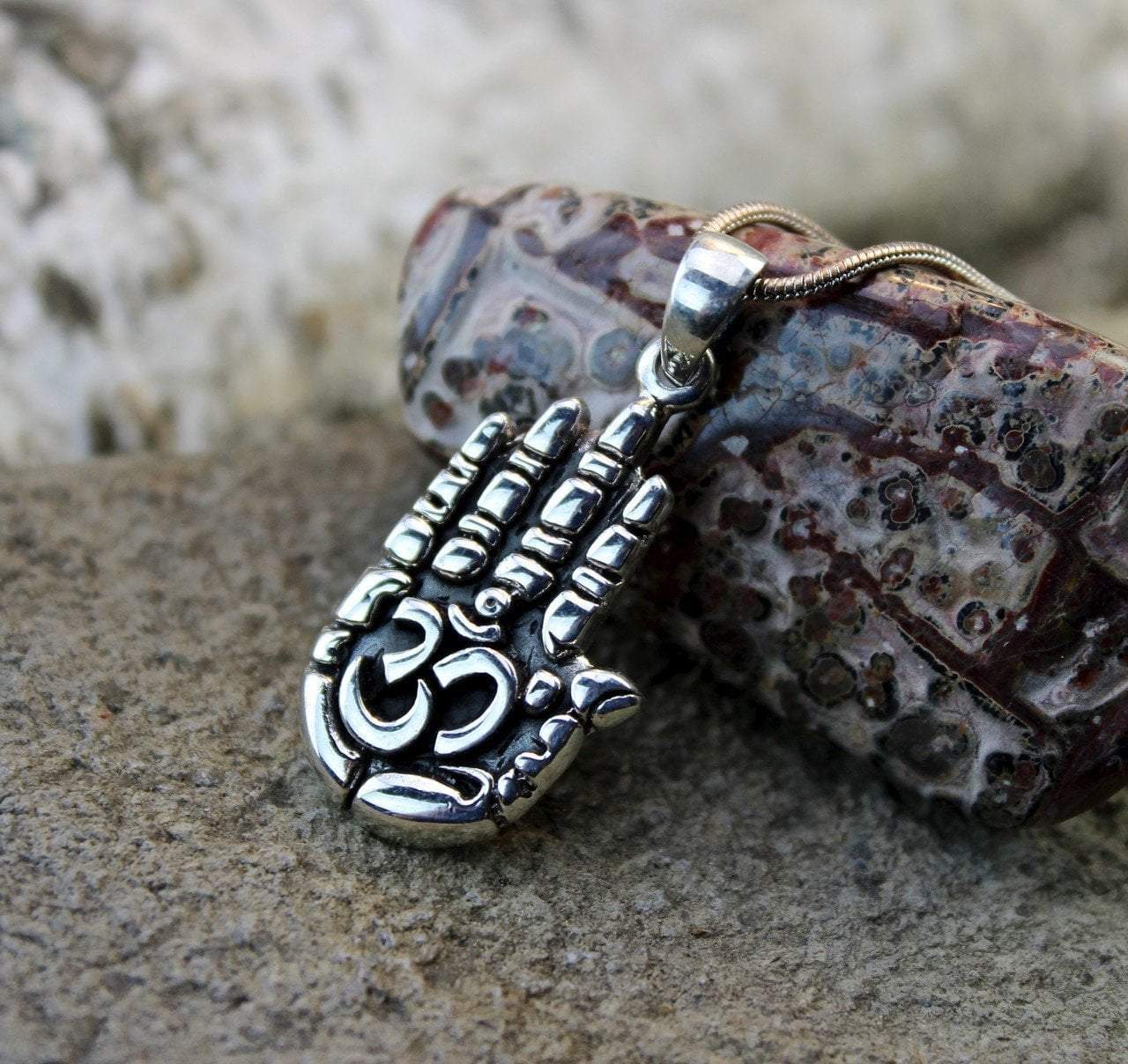Sterling silver Hamsa with Om in the center. Pair this pendant with any chain for a perfect, finished look. Hand made in Nepal.