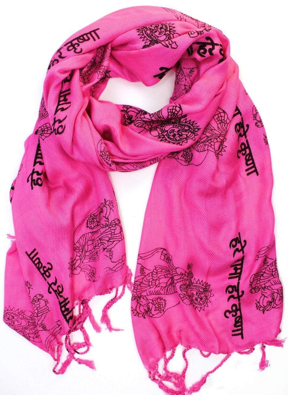 A perfect lightweight scarf for the spring and fall! Simple fringe on the ends and a new Deity design adorn this super soft scarf. Handmade in Kathmandu, Nepal.