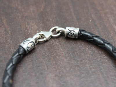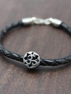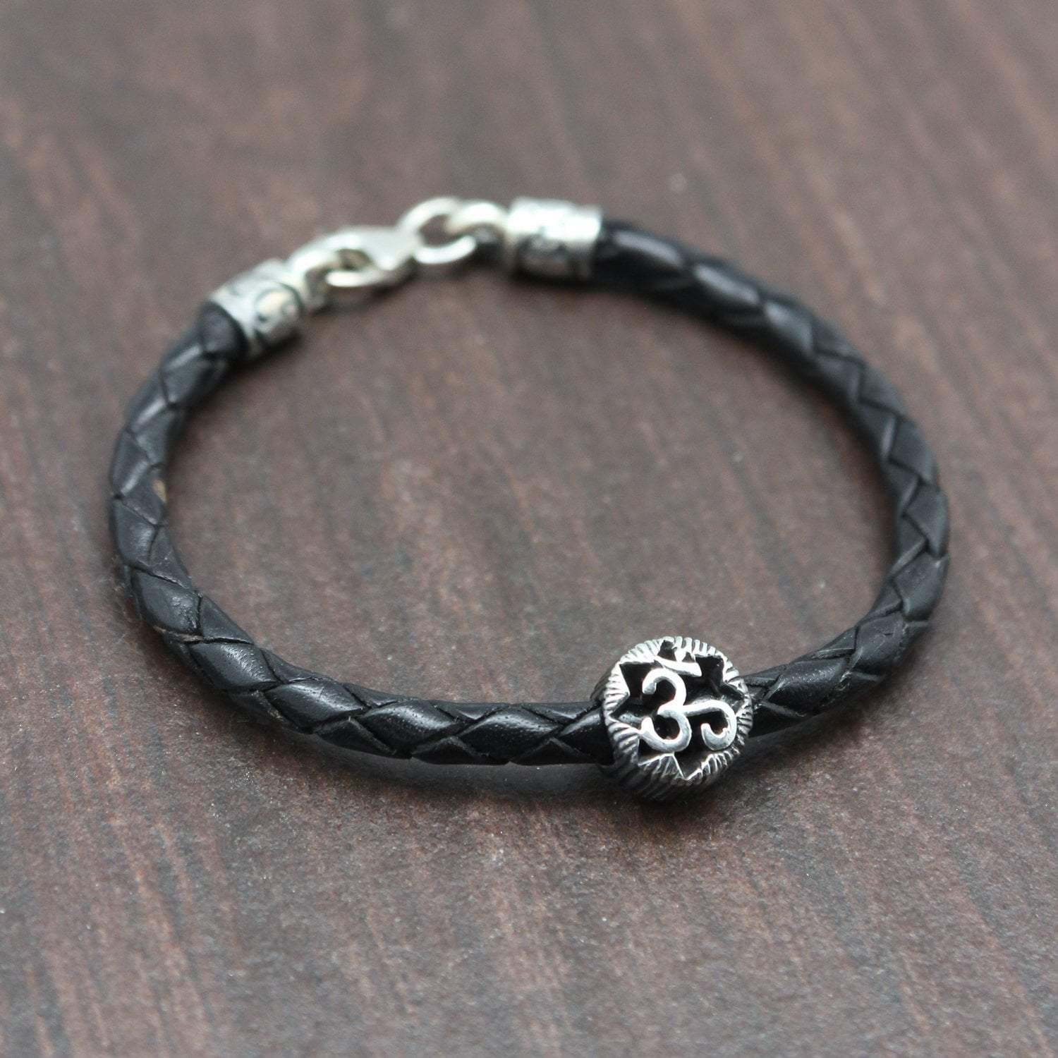 Our new Om bracelet is made in Nepal with hand woven black leather and features a sterling silver Om charm and lobster clasp.  It looks great on its own or paired with a stack of your favorite malas, bracelets, or even a watch.