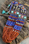 Because each piece is hand crafted, bead/stone size or shape may vary slightly. This beautiful Tibetan necklace features strands of lapis and coral beads with turquoise accents. Includes turquoise stone loop closure.