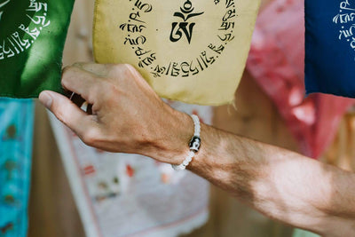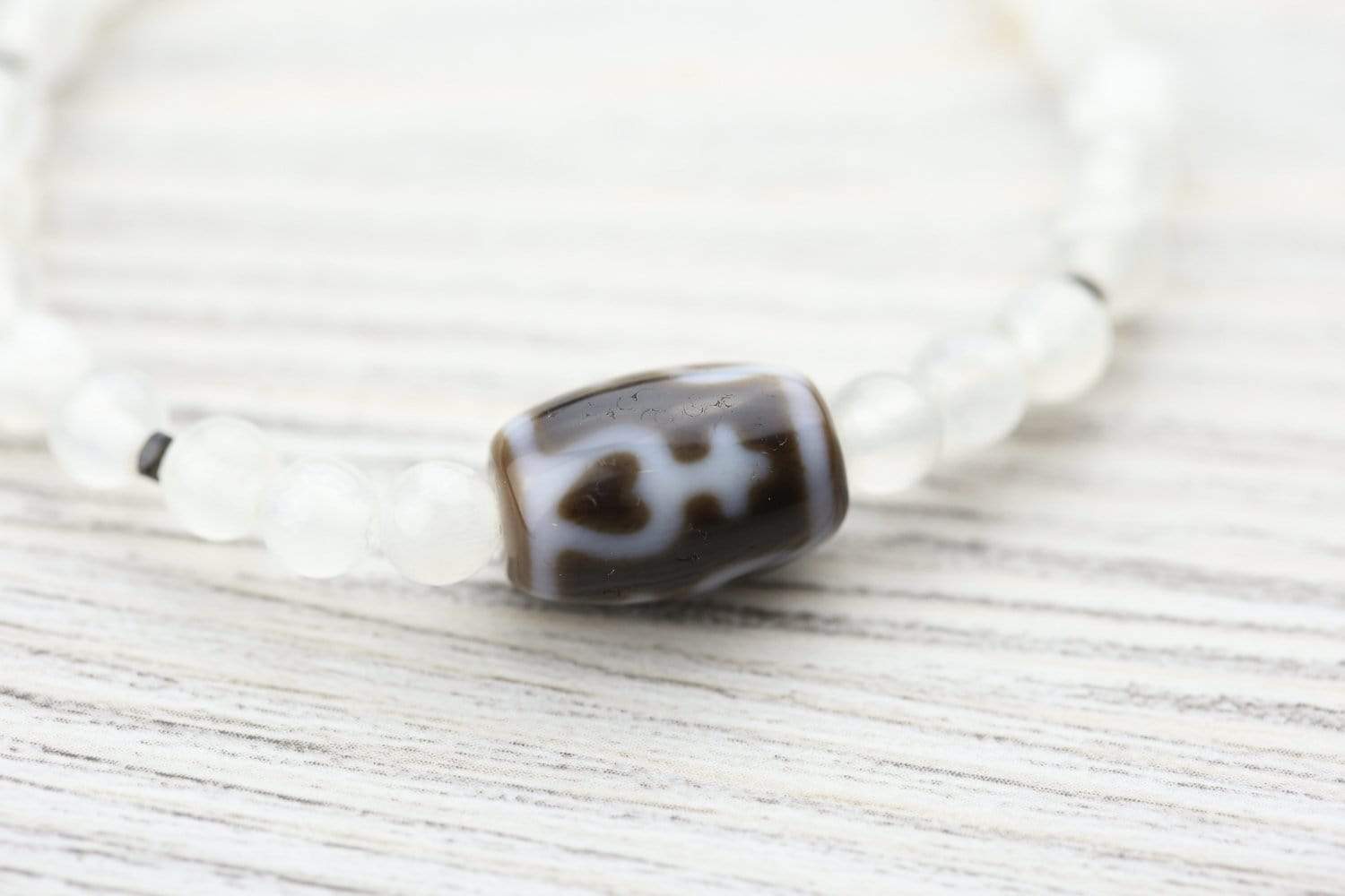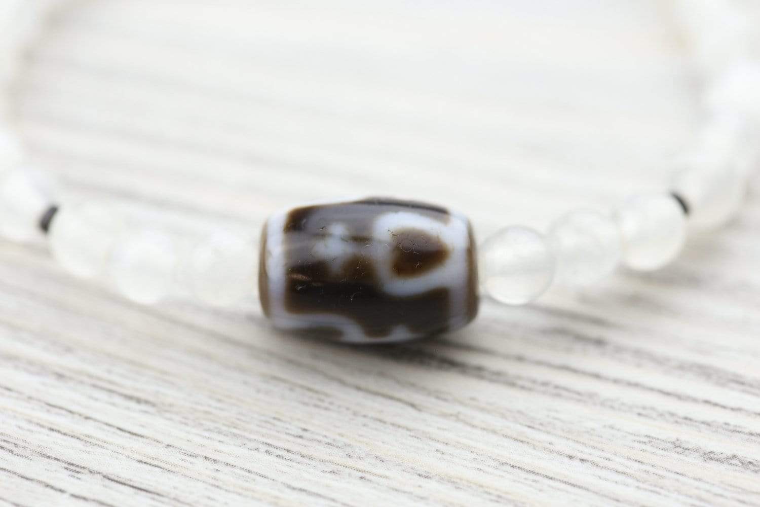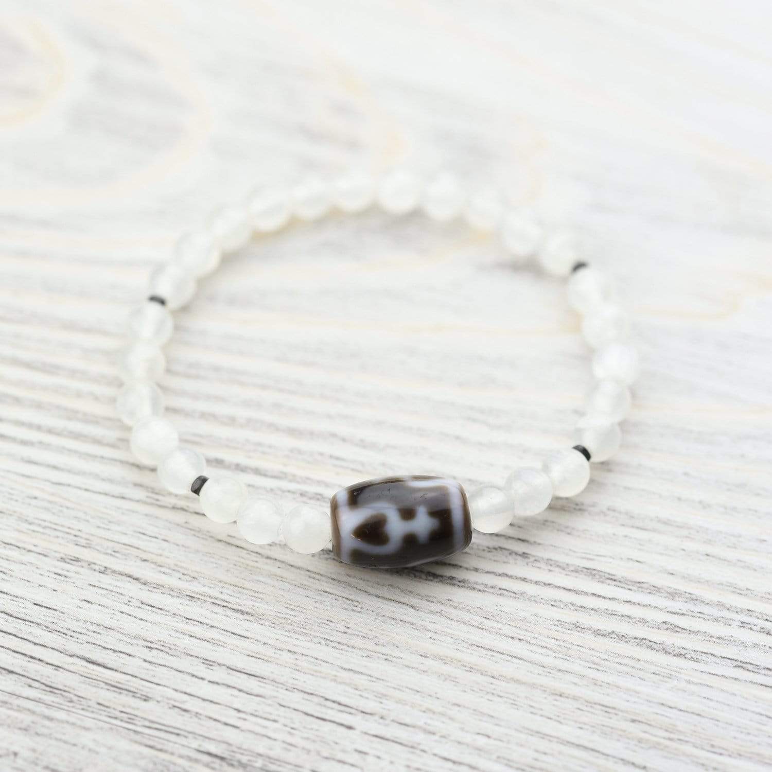 Please note: Model photos show an earlier version of this bracelet with a slightly more rectangular Dzi bead. The updated design features a rounded Dzi, as shown in the white background product photo.