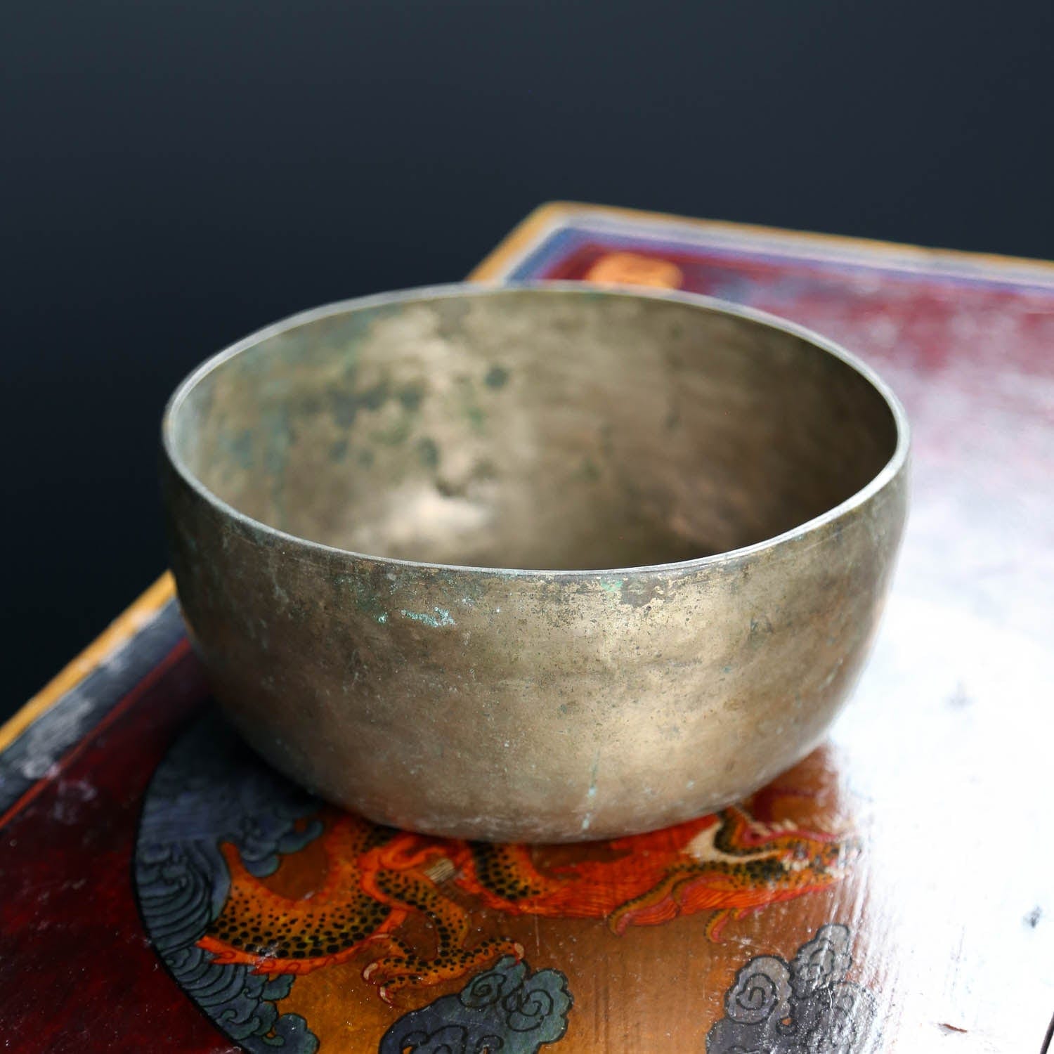 Each time we're able to get a small collection of these bowls is exciting as they are exceptional. Antique Tibetan singing bowls like this one are highly sought after for their remarkable quality sound, rich tones, and unique physical characteristics. Every handmade mark tells a story of the bowls history!