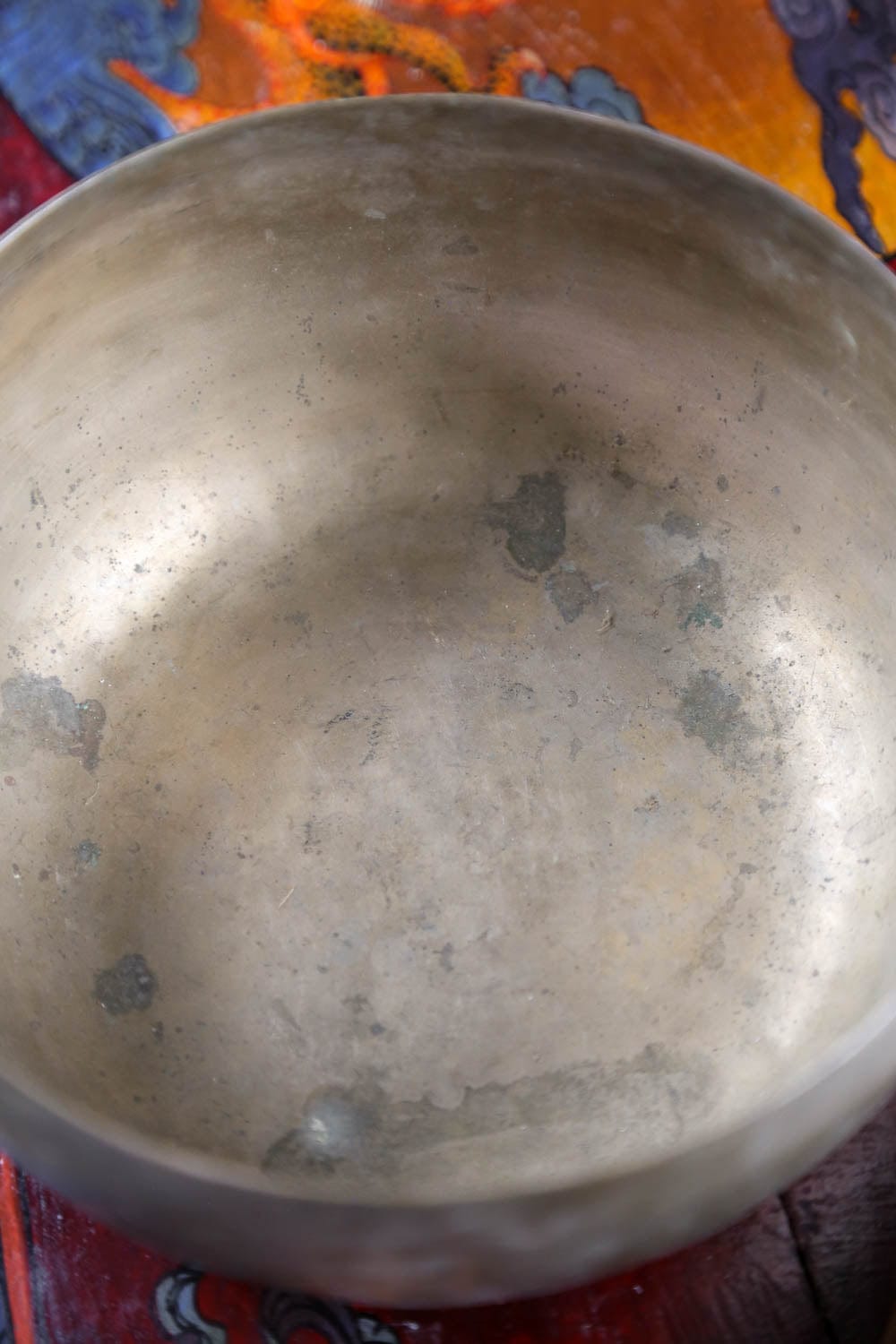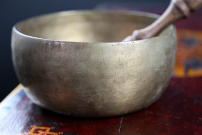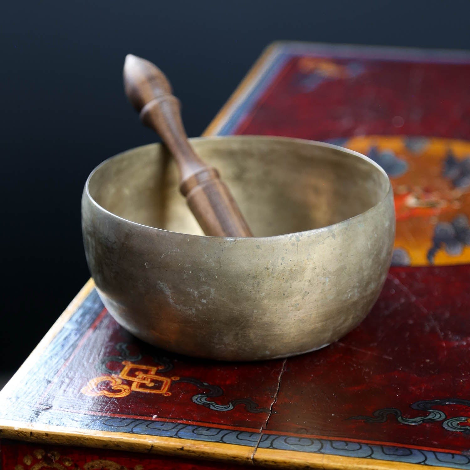 Each time we're able to get a small collection of these bowls is exciting as they are exceptional. Antique Tibetan singing bowls like this one are highly sought after for their remarkable quality sound, rich tones, and unique physical characteristics. Every handmade mark tells a story of the bowls history!