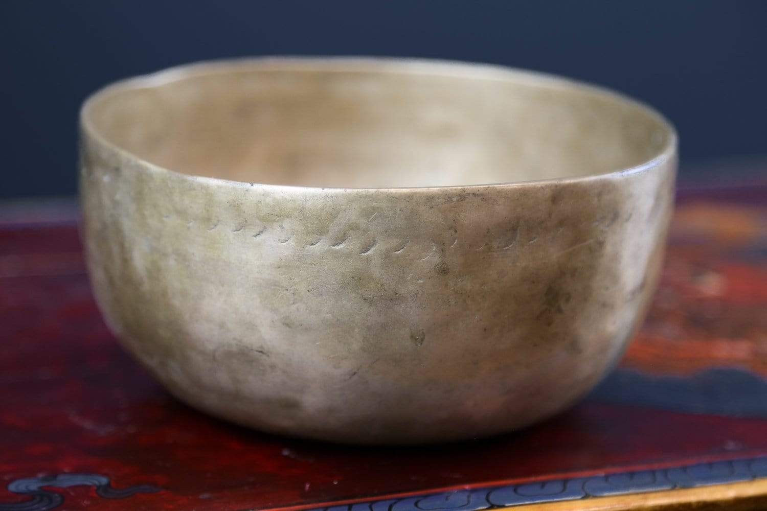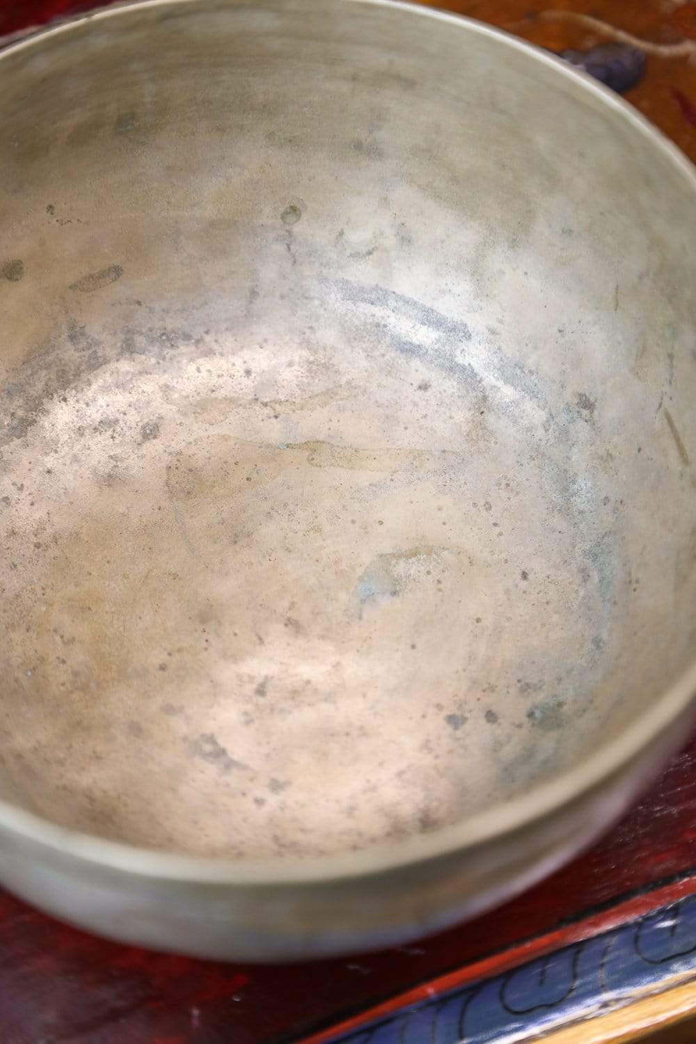 On his last trip to Nepal in 2019, Sander was able to play hundreds of antique bowls from this collection. He carefully selected only a few dozen bowls, including this one, for their high quality sound and unique physical characteristics.