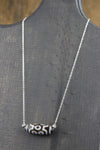 Bead measures approximately 1 1/4 inch long and 1/2 inch wide. Sterling silver necklace is 18 inches around.