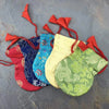 These small silk bags are perfect for holding a small wrist mala, pendant, or small keepsake. It also works as a reusable gift bag. Please choose one of 5 beautiful color brocades.