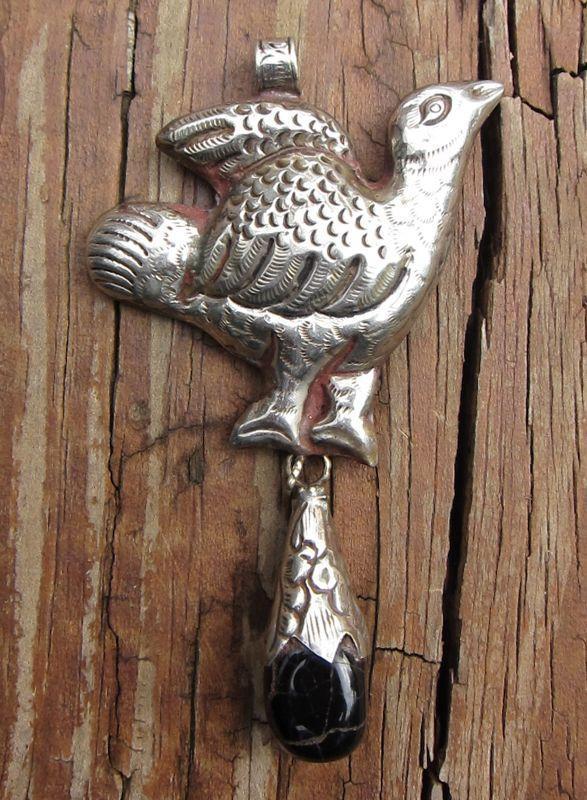 This awesome bird pendant is hand made in Kathmandu Nepal. Hand carved on both sides with an onyx pendant below.