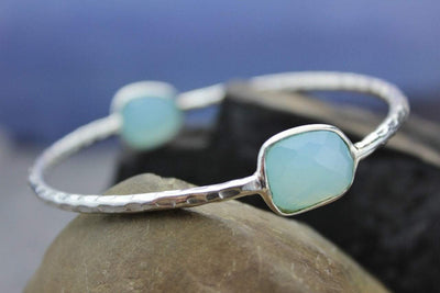Simple, yet stunning! Two chalcedony stones on a silver bracelet.