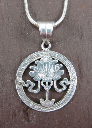 Solid silver lotus flower is one of the 8 auspicious symbols of Buddhism. Hand Made in NepalSize:1 inch