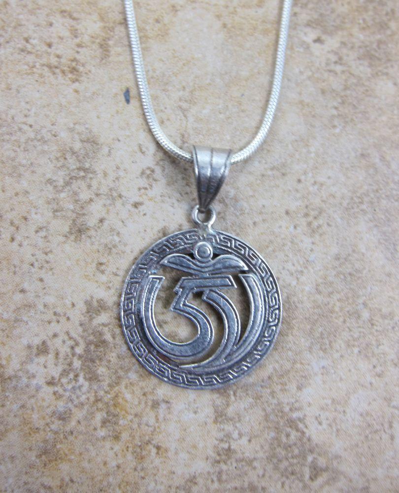 Stylized Tibetan OM pendant solid silver made in Nepal