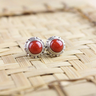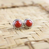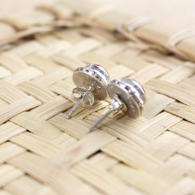 Simple and elegant sterling silver post earrings include a beautiful antique coral centerpiece.