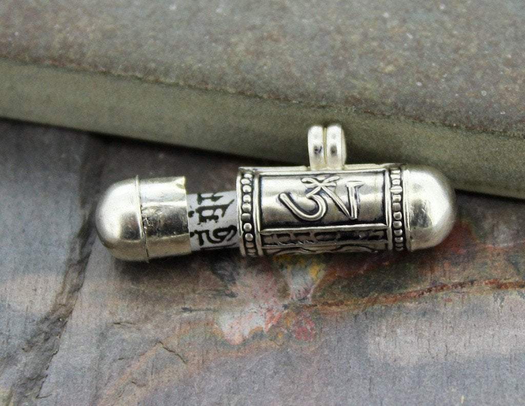 Besides the fact that the gau is almost impossible to open, it's really cool. Om on one side and dorje on the other. The prayers for compassion are already inside.
