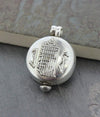 Size: 1 1/2 inches tall.Back opens to reveal an image of HH the Dalai Lama and a tiny piece of a prayer scarf.