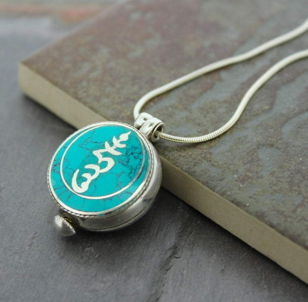 One of my favorites from my recent buying trip to Nepal. This large gau is hand carved with powerful Hung symbol is silver. Tibetans beleive the Hung symbol is the symbol for wisdom that purifies aggression and hatred.