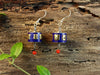 These traditional earrings are light and delicate with inlaid lapis and brass mantra. Coral beads adorn both prayer wheels. Handmade in Nepal.