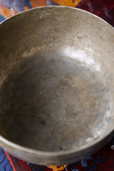 Each time we're able to get a small collection of these bowls is exciting as they are exceptional. Antique Tibetan singing bowls like this one are highly sought after for their remarkable quality sound, rich tones, and unique physical characteristics. Every handmade mark tells a story of the bowls history!