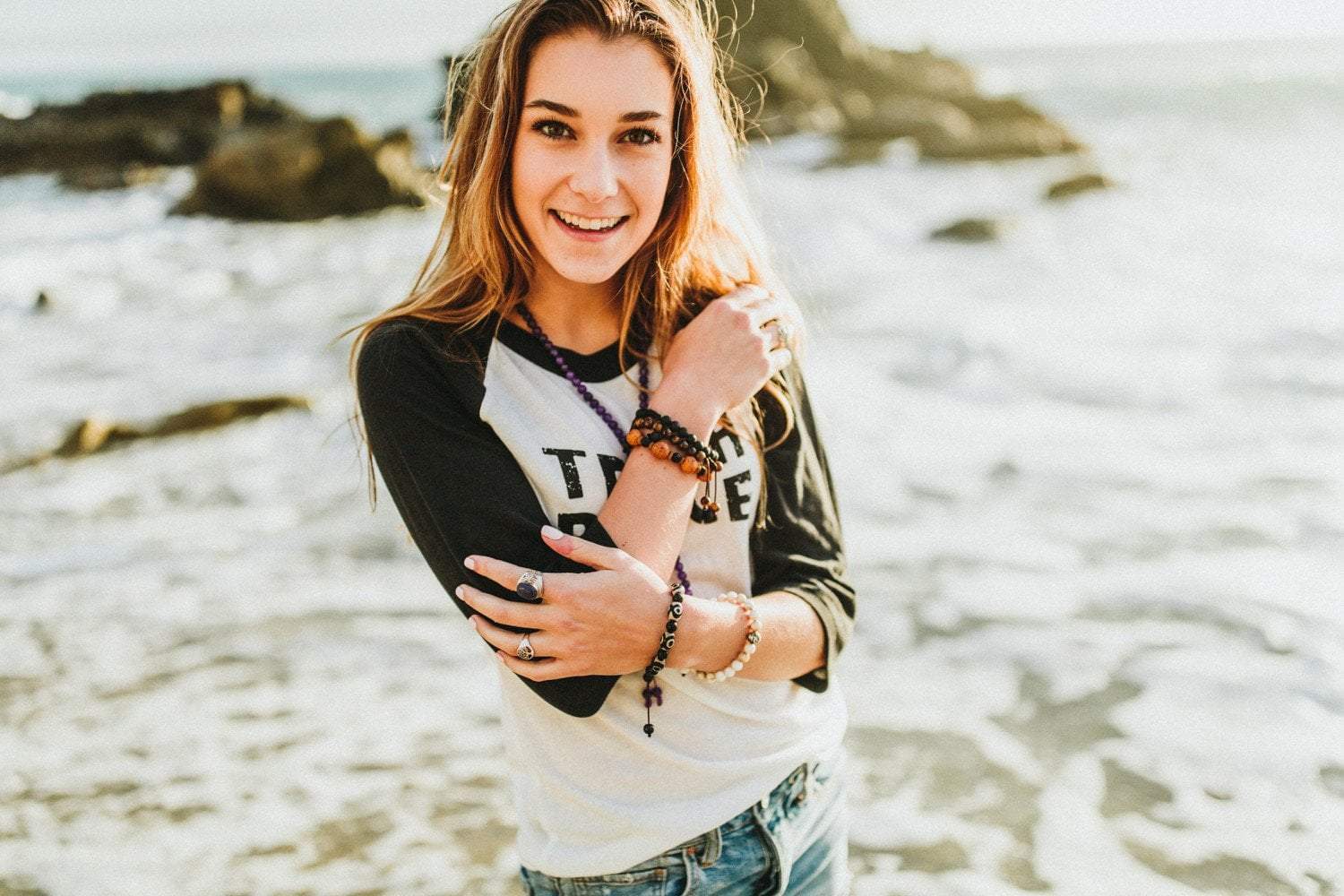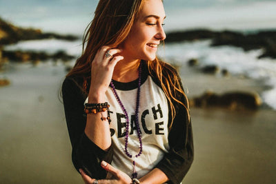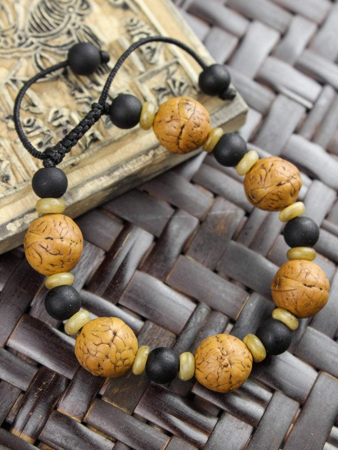 This earthy and modern bodhi bracelet features large bodhi seed beads with matte onyx and bone bead spacers. Looks great worn on its own or with a stack of your favorite bracelets or malas.